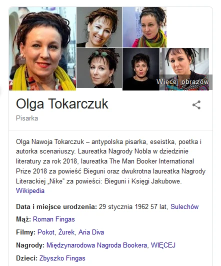 Kobieta nie wzbudza mojej sympatii. Za to czytałem jej książkę Prawiek i inne czasy. Polecam.