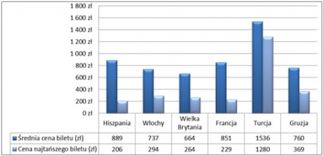 Średnio najtańsze bilety lotnicze polscy turyści kupili do Wielkiej Brytanii, Włoch i Gruzji.