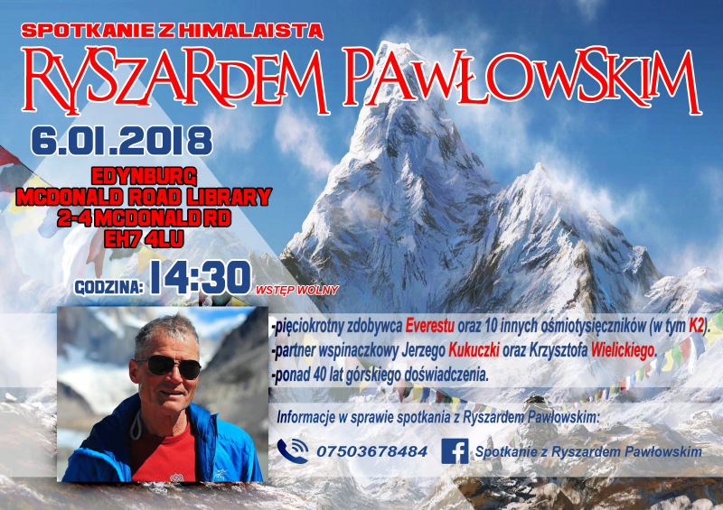 Podczas edynburskiego spotkania opowie o swoich doświadczeniach górskich, a także zaprezentuje fotografie z najciekawszych wypraw. Będzie można również zaopatrzyć się w poświęcone himalaiście książki.